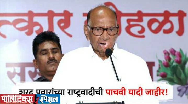 शरद पवार यांच्या पक्षाने आपल्या उमेदवारांची पाचवी यादी जाहीर केली आहे. या यादीत शरद पवार यांनी एकूण पाच जागांसाठी आपले उमेदवार जाहीर केले आहेत. या पाच जागांसह शरद पवार यांच्या राष्ट्रवादीने आतापर्यंत 87 जागांसाठी आपले उमेदवार जाहीर केले आहेत. शरद पवार यांची ही शेवटची यादी असू शकते.