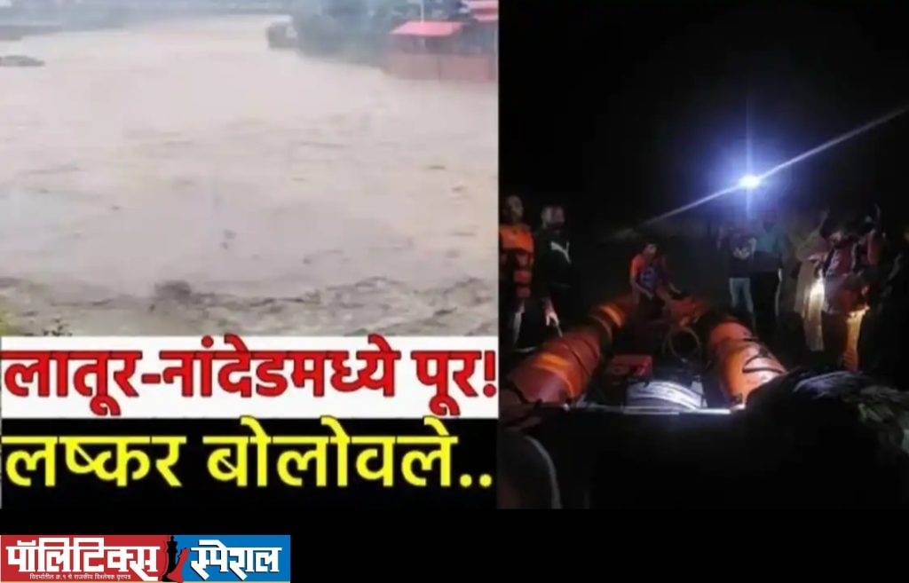 लातूर, नांदेड जिल्ह्यात तुफान पाऊस..! आज शाळांना सुट्टी, लष्कराला बोलावले, पुरातून 10 जणांची सुटका….