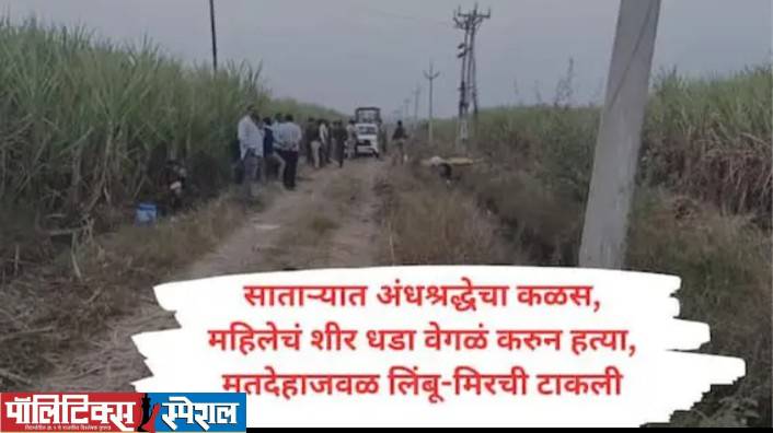साताऱ्यात अंधश्रद्धेचा कळस, ऊसाच्या शेतात नेऊन महिलेचं शीर धडा वेगळं केलं; मृतदेहाजवळ लिंबू-मिरची टाकली….